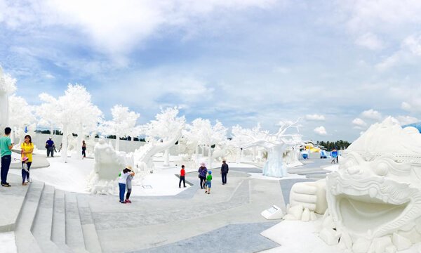 Hamapan in the form of white sand sculpture in the world. "Forest" Wonderland sculpture in the form of white characters paraded the animals in the forest creatures beyond imagination including over 30 of the International: Ornithological Karin, Kmpo, Unicorn, Fish Anon, Ehra etc.