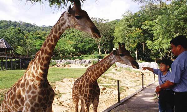 Khao Kheow is an open zoo were animals roam around free in large open areas. Divided in zones as the African Savannah, Cats Complex, Eld’s Deer Park and a walk-through aviary, the large zoo is the place to see hundreds of animal species from up close. Khao Kheow is beautifully landscaped with large open areas, viewpoints, streams and a waterfall. Visitors can drive through the open zoo in the zoo’s electric tram or rent a golf cart.